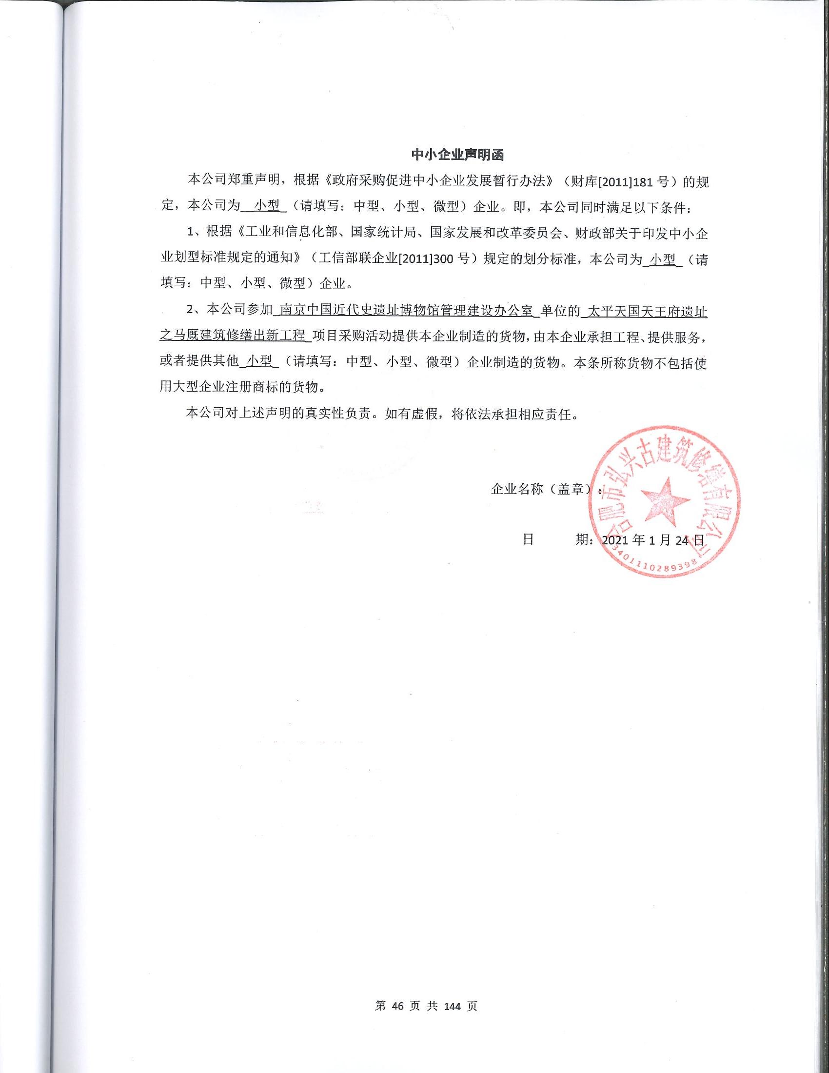 二、项目名称:太平天国天王府遗址之马厩建筑修缮出新工程三、中标(成交)信息